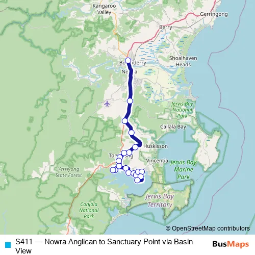 Click here to view the nearest S411 - Nowra Anglican to Sanctuary Point via Basin View bus stop.