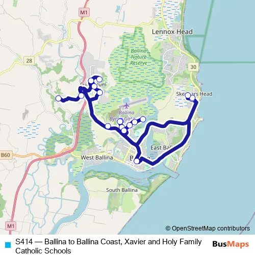 Click here to view the nearest S414 - Ballina to Ballina Coast, Xavier and Holy Family Catholic Schools bus stop.