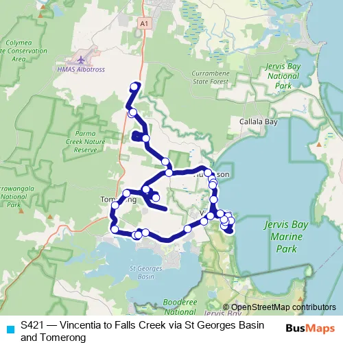 Click here to view the nearest S421 - Vincentia to Falls Creek via St Georges Basin and Tomerong bus stop.