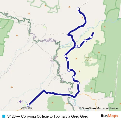 The first stop of the S426 bus route is Corryong College, Towong Rd and the last stop is Tooma Rural Fire Brigade, Welaregang Rd. S426 (Corryong College to Tooma via Greg Greg) is operational during on weekdays.