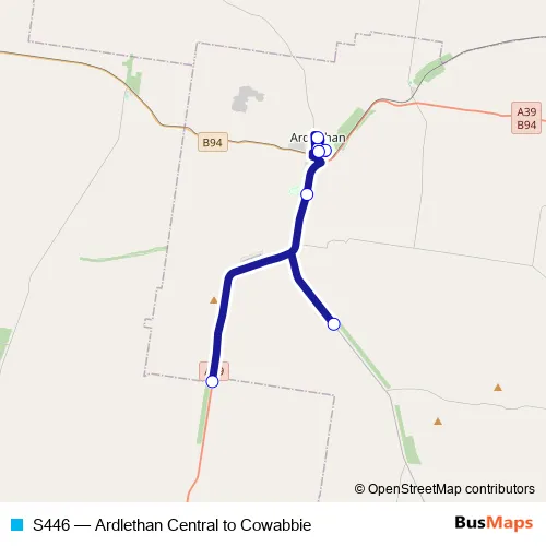 Click here to view the nearest S446 - Ardlethan Central to Cowabbie bus stop.