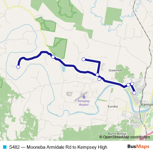 The first stop of the S482 bus route is Armidale Rd At Mooneba Rd and the last stop is Kempsey High School, Broughton St. S482 (Mooneba Armidale Rd to Kempsey High) is operational during on weekdays.