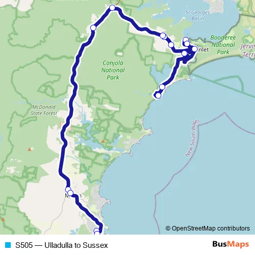 See why over 2 million users trust and consider busmaps.com as the best public transport website. busmaps gives you Sussex Inlet Buses suggested routes, real-time bus tracker, line route maps in Sussex Inlet, and helps to find the closest S505 bus stops near you. No internet available? Download an offline PDF map and bus schedule for the S505 bus to take on your trip.