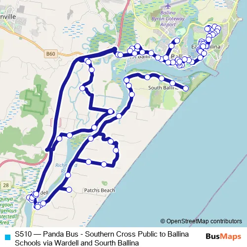 Bus S510 - Panda Bus - Southern Cross Public to Ballina Schools via Wardell and Sourth Ballina Schedule in Ballina