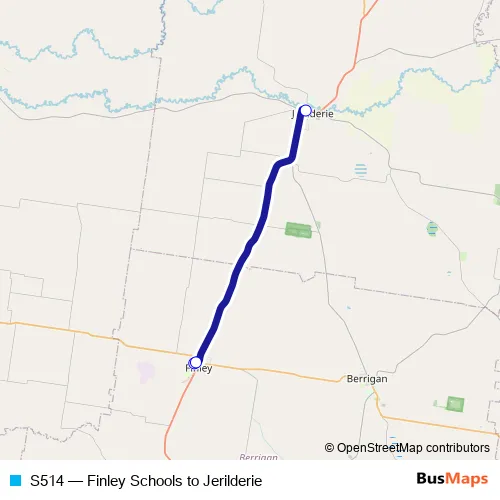 The first stop of the S514 bus route is Finley High School, Tocumwal St and the last stop is Wood St At Coreen St. S514 (Finley Schools to Jerilderie) is operational during on weekdays.