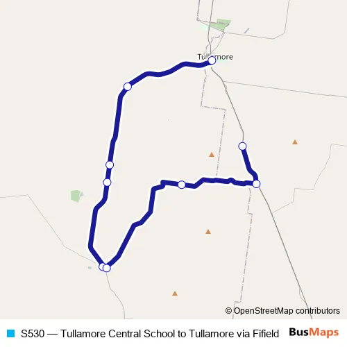 The first stop of the S530 bus route is Tullamore Central School, Hinkler St and the last stop is 6346 Fifield Rd. S530 (Tullamore Central School to Tullamore via Fifield) is operational during on weekdays.