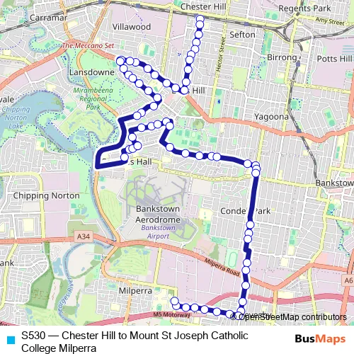 Bus S530 - Chester Hill to Mount St Joseph Catholic College Milperra in Liverpool: Stops & Timetable