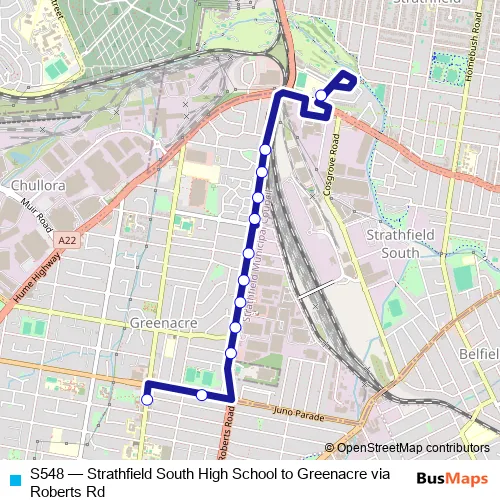 Click here to view the nearest S548 - Strathfield South High School to Greenacre via Roberts Rd bus stop.