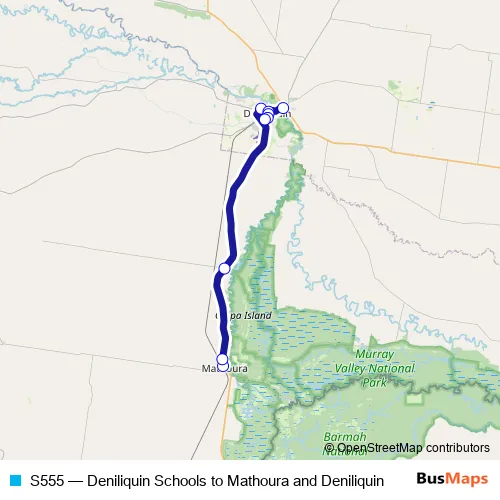Click here to view the nearest S555 - Deniliquin Schools to Mathoura and Deniliquin bus stop.