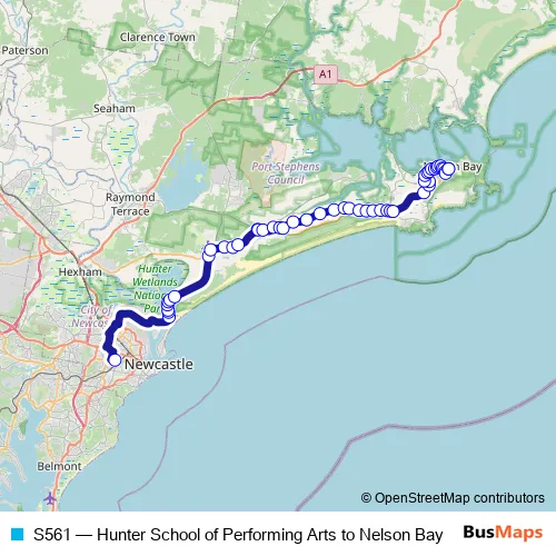 Click here to view the nearest S561 - Hunter School of Performing Arts to Nelson Bay bus stop.