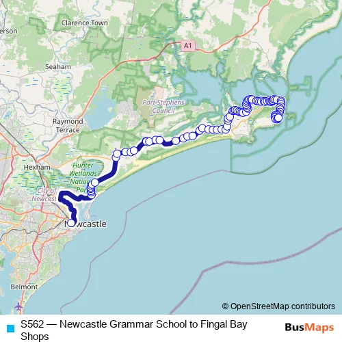 Click here to view the nearest S562 - Newcastle Grammar School to Fingal Bay Shops bus stop.