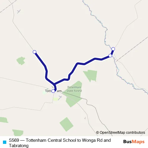 The first stop of the S569 bus route is The Bogan Way At Wonga Rd and the last stop is Tottenham Central School, Merilba St. S569 (Tottenham Central School to Wonga Rd and Tabratong) is operational during on weekdays.