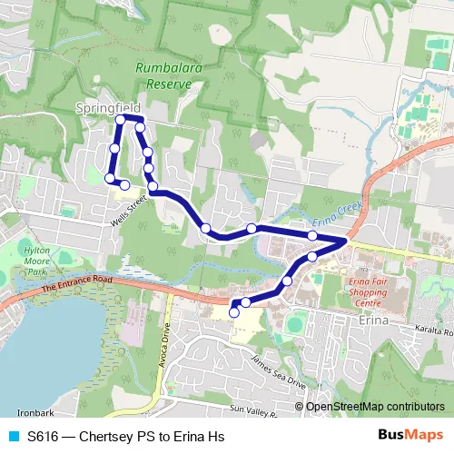 Click here to view the nearest S616 - Chertsey PS to Erina Hs bus stop.