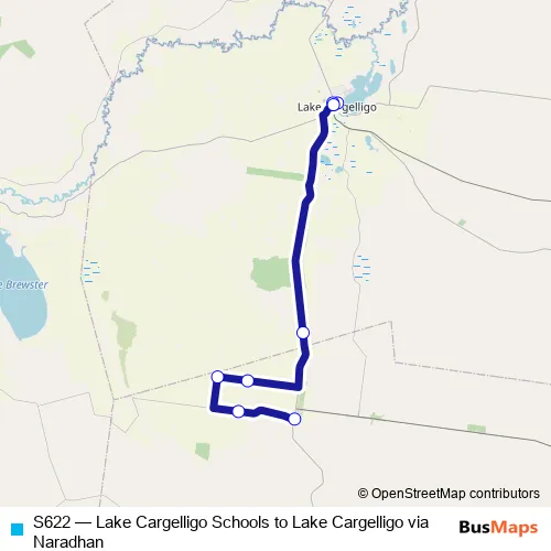 Click here to view the nearest S622 - Lake Cargelligo Schools to Lake Cargelligo via Naradhan bus stop.