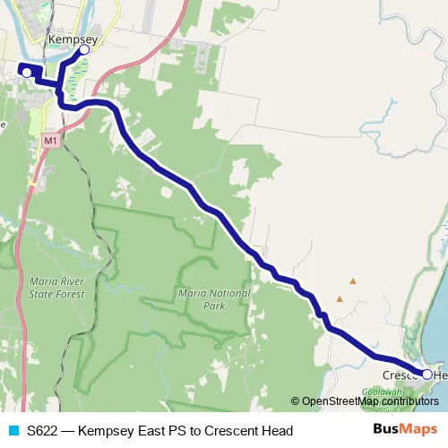 Bus S622 - Kempsey East PS to Crescent Head: Full Schedule in Kempsey