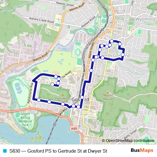 Bus S630 - Gosford PS to Gertrude St at Dwyer St Schedule in North Gosford