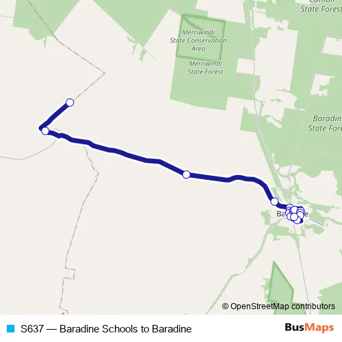 Services on the S637 - Baradine Schools to Baradine bus start at 07:51 on Monday, Tuesday, Wednesday, Thursday, Friday.