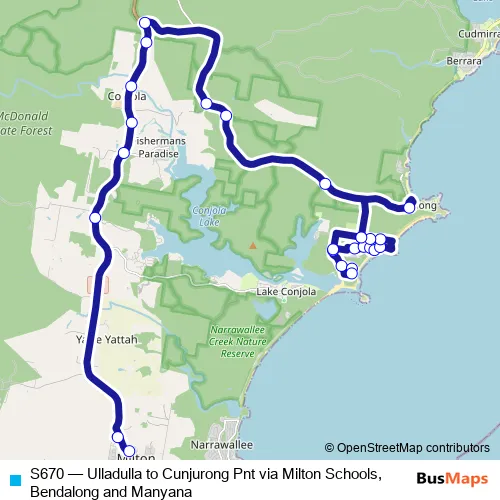 Bus S670 - Ulladulla to Cunjurong Pnt via Milton Schools, Bendalong and Manyana in Manyana: Stops & Timetable