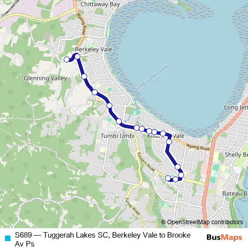 Bus S689 - Tuggerah Lakes SC, Berkeley Vale to Brooke Av Ps in The Entrance North: Stops & Timetable