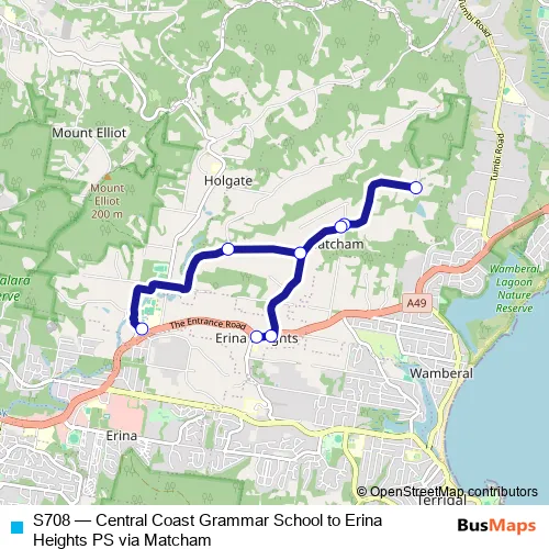 Bus S708 - Central Coast Grammar School to Erina Heights PS via Matcham in Central Coast: Stops & Timetable