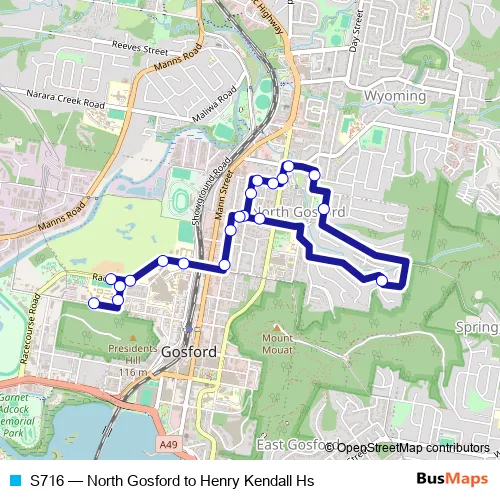 Click here to view the nearest S716 - North Gosford to Henry Kendall Hs bus stop.