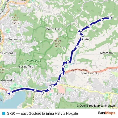 Bus S720 - East Gosford to Erina HS via Holgate Schedule in Central Coast
