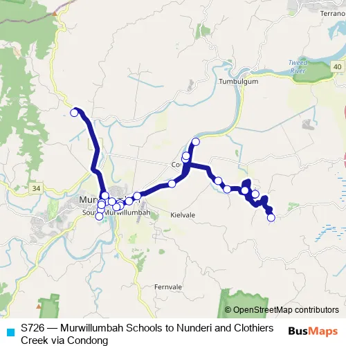 Click here to view the nearest S726 - Murwillumbah Schools to Nunderi and Clothiers Creek via Condong bus stop.