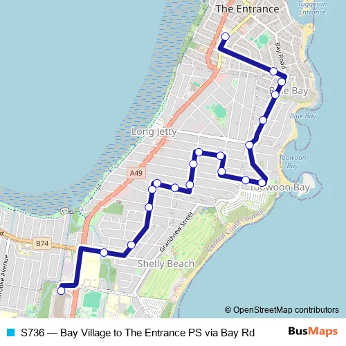 See why over 2 million users trust and consider busmaps.com as the best public transport website. busmaps gives you The Entrance North Buses suggested routes, real-time bus tracker, line route maps in The Entrance North, and helps to find the closest S736 bus stops near you. No internet available? Download an offline PDF map and bus schedule for the S736 bus to take on your trip.