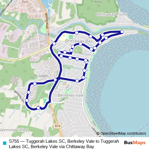 Bus S755 - Tuggerah Lakes SC, Berkeley Vale to Tuggerah Lakes SC, Berkeley Vale via Chittaway Bay in The Entrance North: Stops & Timetable