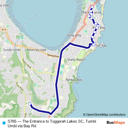 Click here to view the nearest S765 - The Entrance to Tuggerah Lakes SC, Tumbi Umbi via Bay Rd bus stop.