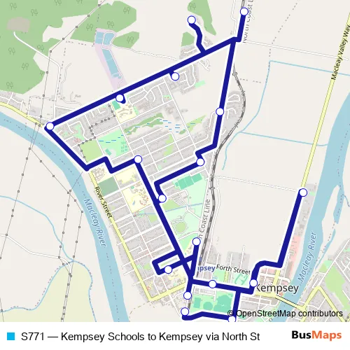 See why over 2 million users trust and consider busmaps.com as the best public transport website. busmaps gives you Kempsey Buses suggested routes, real-time bus tracker, line route maps in Kempsey, and helps to find the closest S771 bus stops near you. No internet available? Download an offline PDF map and bus schedule for the S771 bus to take on your trip.
