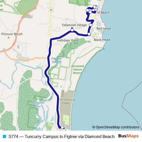 Click here to view the nearest S774 - Tuncurry Campus to Figtree via Diamond Beach bus stop.