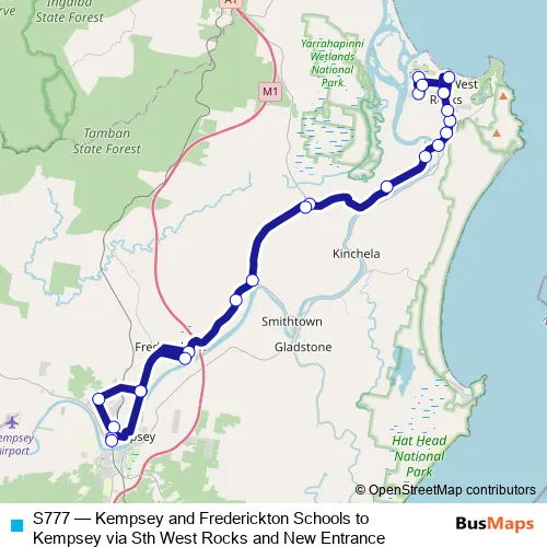 Click here to view the nearest S777 - Kempsey and Frederickton Schools to Kempsey via Sth West Rocks and New Entrance bus stop.