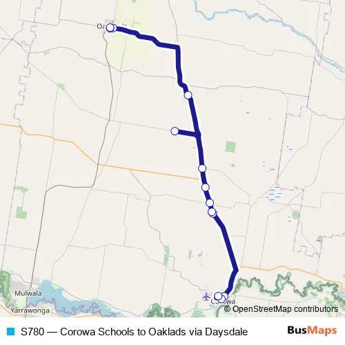 Click here to view the nearest S780 - Corowa Schools to Oaklads via Daysdale bus stop.