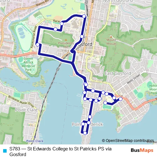 Bus S783 - St Edwards College to St Patricks PS via Gosford in Central Coast: Stops & Timetable