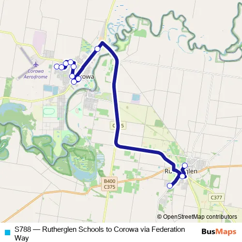 The first stop of the S788 bus route is Tower St Opp Chisnall St and the last stop is St Mary's Primary School, High St. S788 (Rutherglen Schools to Corowa via Federation Way) is operational during on weekdays.