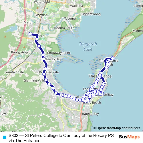 Click here to view the nearest S803 - St Peters College to Our Lady of the Rosary PS via The Entrance bus stop.