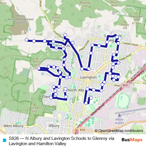 Click here to view the nearest S826 - N Albury and Lavington Schools to Glenroy via Lavington and Hamilton Valley bus stop.