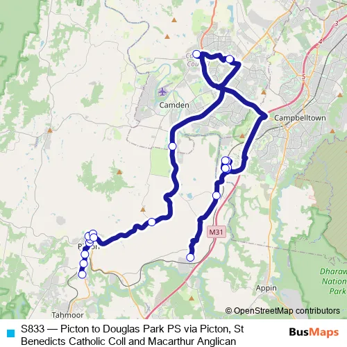 Bus S833 - Picton to Douglas Park PS via Picton, St Benedicts Catholic Coll and Macarthur Anglican: Full Schedule in Picton