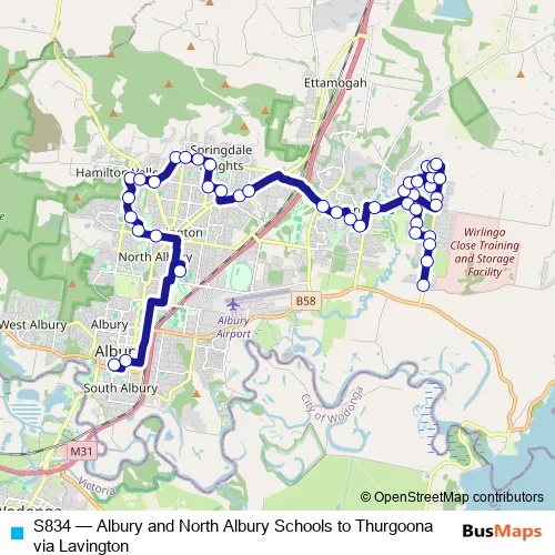 Click here to view the nearest S834 - Albury and North Albury Schools to Thurgoona via Lavington bus stop.