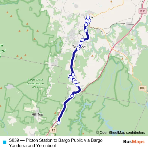 Bus S839 - Picton Station to Bargo Public via Bargo, Yanderra and Yerrinbool in Bargo: Stops & Timetable