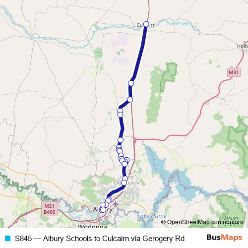 Click here to view the nearest S845 - Albury Schools to Culcairn via Gerogery Rd bus stop.