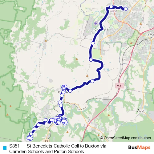 Click here to view the nearest S851 - St Benedicts Catholic Coll to Buxton via Camden Schools and Picton Schools bus stop.