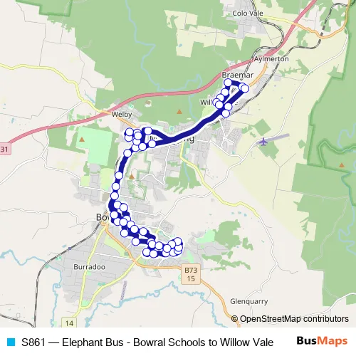 Click here to view the nearest S861 - Elephant Bus - Bowral Schools to Willow Vale bus stop.