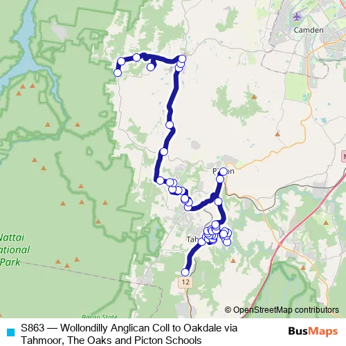Click here to view the nearest S863 - Wollondilly Anglican Coll to Oakdale via Tahmoor, The Oaks and Picton Schools bus stop.