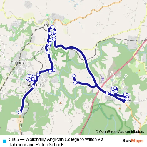 Click here to view the nearest S865 - Wollondilly Anglican College to Wilton via Tahmoor and Picton Schools bus stop.