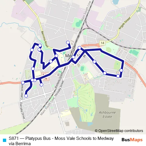 Bus S871 - Platypus Bus - Moss Vale Schools to Medway via Berrima in Moss Vale: Stops & Timetable