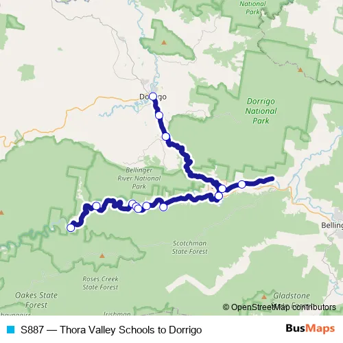 Click here to view the nearest S887 - Thora Valley Schools to Dorrigo bus stop.