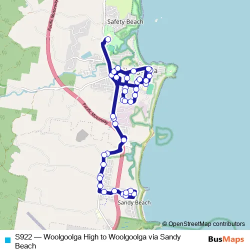 Click here to view the nearest S922 - Woolgoolga High to Woolgoolga via Sandy Beach bus stop.