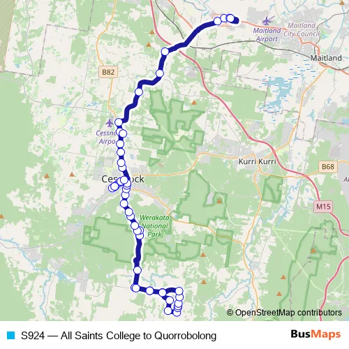 Bus S924 - All Saints College to Quorrobolong in Cessnock: Stops & Timetable
